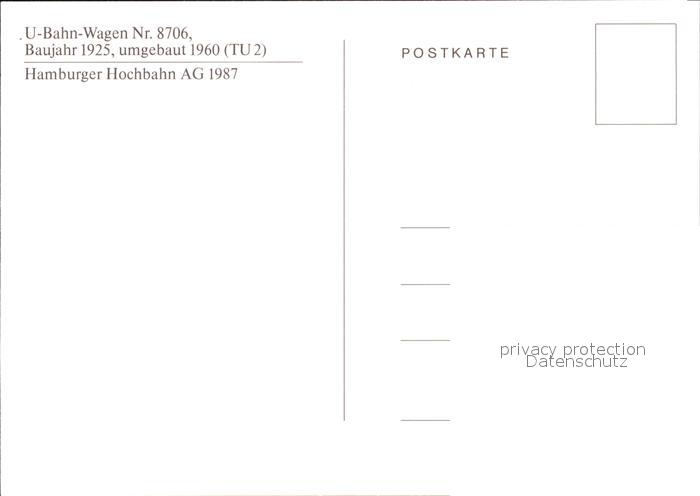U-Bahn Subway Underground Metro U-Bahn-Wagen Nr. 8706 Baujahr 1925 postalisch nicht gelaufen Reprokarte (modern) Erhaltung siehe scans [PaolaD17 kt100box]