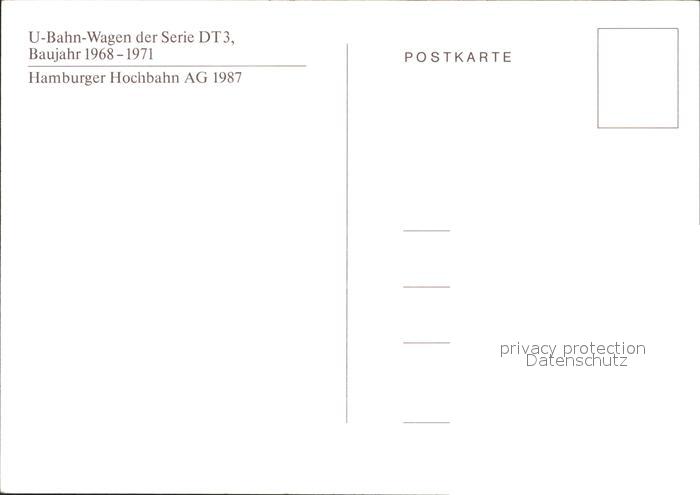 U-Bahn Subway Underground Wagen Serie DT3 Hamburg postalisch nicht gelaufen Erhaltung siehe scans