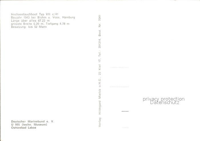 U-Boot Unterseeboot Submarine Sous-Marin Hochseetauchboot Typ VII c/41 postalisch nicht gelaufen Erhaltung siehe scans