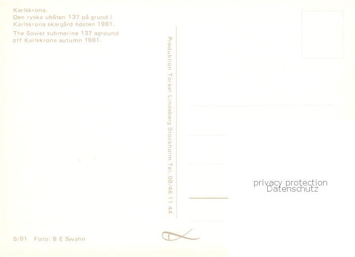 73900993 U-Boot Unterseeboot Submarine Sous-Marin Karlskrona postalisch nicht gelaufen Erhaltung siehe scans [IrynaD87] KatCode: 22480000001300