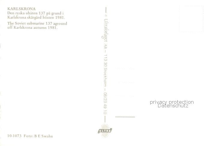 73900994 U-Boot Unterseeboot Submarine Sous-Marin Karlskrona postalisch nicht gelaufen Erhaltung siehe scans [IrynaD87] KatCode: 22480000001300