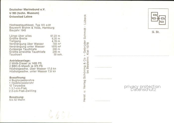72609260 U-Boot Unterseeboot Submarine Sous-Marin U-995 Laboe Deutscher Marinebund e.V. KatCode 22480000001300