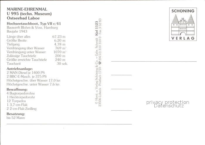U-Boot Unterseeboot Submarine Sous-Marin U 995 Marine-Ehrenmal Laboe postalisch nicht gelaufen Erhaltung siehe scans