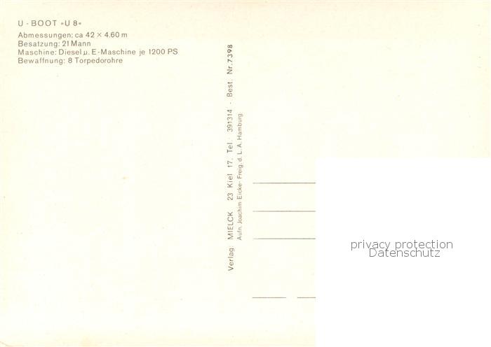 U-Boot Unterseeboot Submarine Sous-Marin U Boot U8 S187 postalisch nicht gelaufen Erhaltung siehe scans [IrynaD87]
