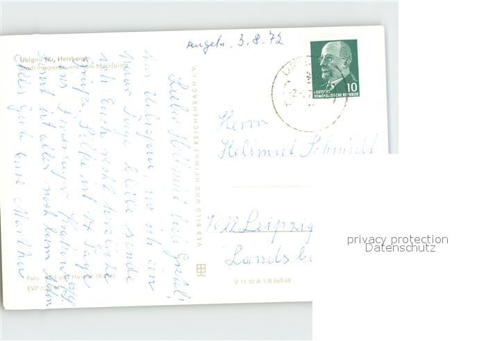 72330242 alte Postkarte Ubigau Herzberg Harz Stadtwappenbrunnen am Marktplatz postalisch gelaufen Erhaltung siehe scans KatCode: 11110003156009