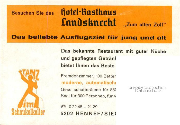 73852181 Uckerath Hennef Hotel Restaurant Landsknecht postalisch nicht gelaufen Werbekarte (keine Postkarte) Erhaltung siehe scans [FriedD77] KatCode: 11110005382020