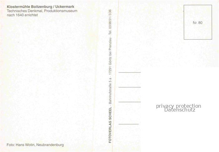 74154857 Uckermark Klostermuehle Boitzenburg postalisch nicht gelaufen Erhaltung siehe scans [WerneD78] KatCode: 11110012073572