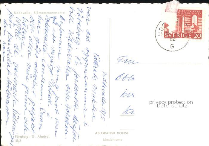 old postcard Uddevalla Sjoemansmonumentet postalisch gelaufen Erhaltung siehe scans