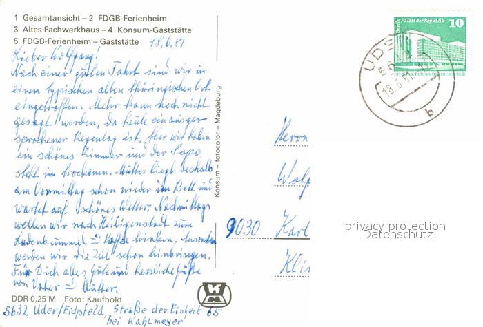 72730464 alte Postkarte Uder Gesamtansicht FDGB Ferienheim Fachwerkhaus Konsum Gaststaette postalisch gelaufen Erhaltung siehe scans [FriedD77] KatCode: 11110016061097