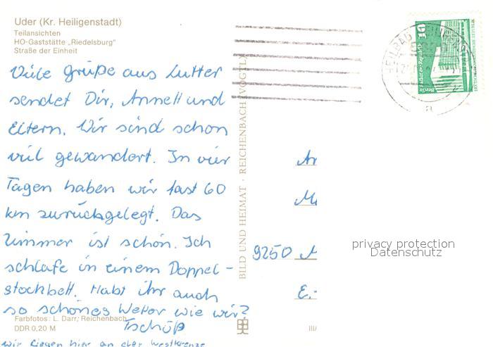 73076017 alte Postkarte Uder HO Gaststaette Riedelsberg Strasse der Einheit postalisch gelaufen Erhaltung siehe scans [KathaD81] KatCode: 11110016061097