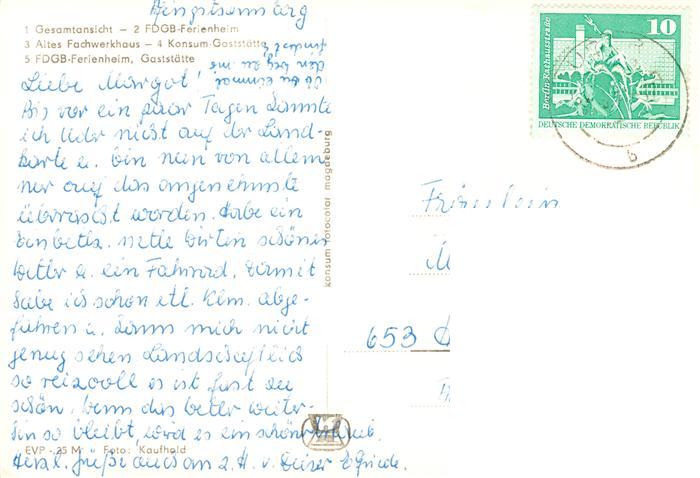 73900548 alte Postkarte Uder Panorama FDGB Ferienheim Altes Fachwerkhaus Konsum Gaststaette FDGB Ferienheim Gastraum postalisch gelaufen Erhaltung siehe scans [WerneD78] KatCode: 11110016061097