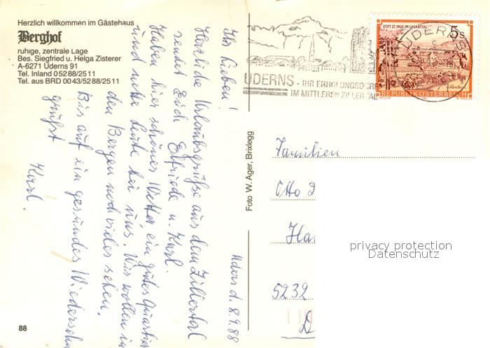 13232237 alte Postkarte Uderns Gaestehaus Berghof postalisch gelaufen Erhaltung siehe scans [NatalD47] KatCode: 11390335070935