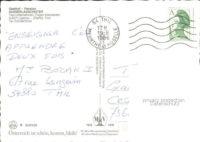 72073361 alte Postkarte Uderns Gasthof Pension Ausserladscheiter postalisch gelaufen Erhaltung siehe scans KatCode: 11390335070935