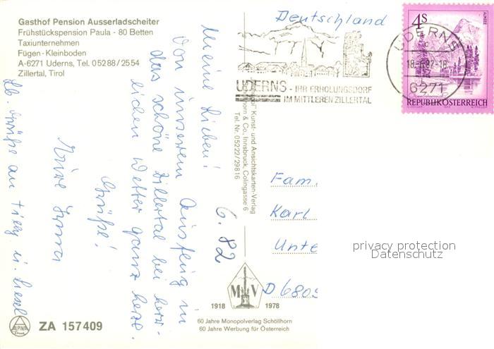 73070698 alte Postkarte Uderns Gasthof Pension Ausserladscheiter postalisch gelaufen Erhaltung siehe scans [FriedD77] KatCode: 11390335070935
