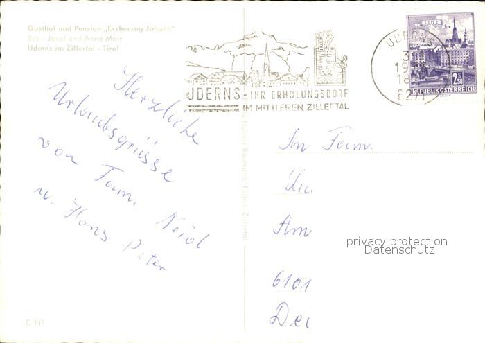 72411756 alte Postkarte Uderns Gasthof Pension Erzherzog Johann postalisch gelaufen Erhaltung siehe scans KatCode: 11390335070935