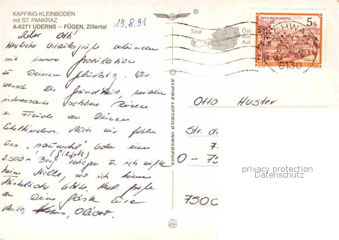 72890823 alte Postkarte Uderns Panorama Kapfing Kleinboden Sankt Pankraz postalisch gelaufen Erhaltung siehe scans [AndreD76] KatCode: 11390335070935