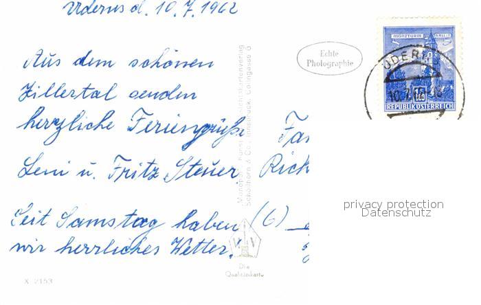 72786772 alte Postkarte Uderns Panorama Zillertal gegen Sonnwendjoch Mangfallgebirge postalisch gelaufen Erhaltung siehe scans [FriedD77] KatCode: 11390335070935