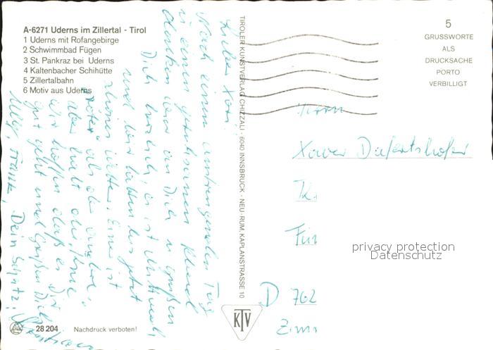 72438113 alte Postkarte Uderns Rofanggebirge Schwimmbad Fuegen St. Pankratz Kaltenbacher Schihuette Zillertalbahn postalisch gelaufen Erhaltung siehe scans KatCode: 11390335070935