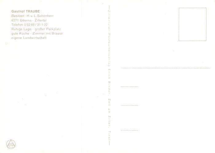 Uderns Tirol AT Gasthof Traube Restaurant postalisch nicht gelaufen Erhaltung siehe scans [FriedD77]