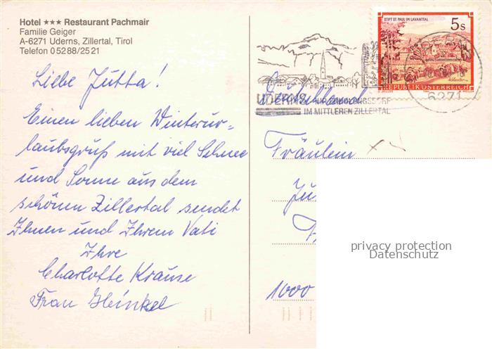 74023221 alte Postkarte Uderns Tirol AT Hotel Restaurant Pachmair postalisch gelaufen Erhaltung siehe scans [FriedD77] KatCode: 11390335070935