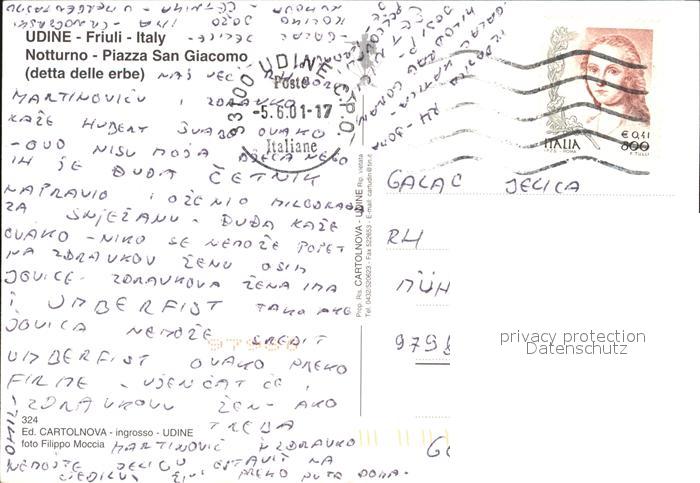 old postcard Udine Nachtaufnahme Piazza San Giacomo postalisch gelaufen Erhaltung siehe scans