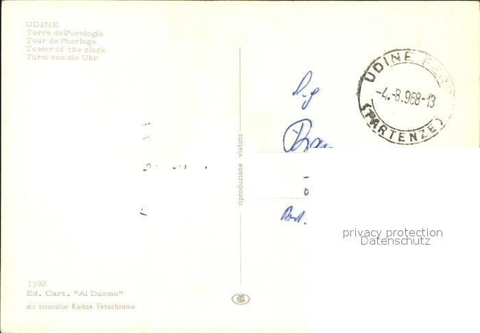 old postcard Udine Uhrenturm postalisch gelaufen Erhaltung siehe scans