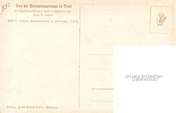43220287 ueberetsch Schloss Sigmundskron postalisch nicht gelaufen Erhaltung siehe scans [WerneD78] Wern Katcode 11240