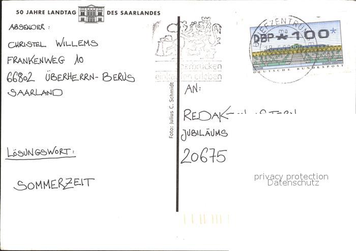 72033645 alte Postkarte ueberherrn 50 Jahre Landtag des Saarlandes postalisch gelaufen Erhaltung siehe scans KatCode: 11110010044119