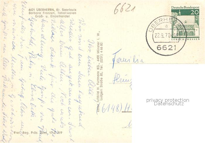 73851242 alte Postkarte ueberherrn Fliegeraufnahme postalisch gelaufen Erhaltung siehe scans [WerneD78] KatCode: 11110010044119