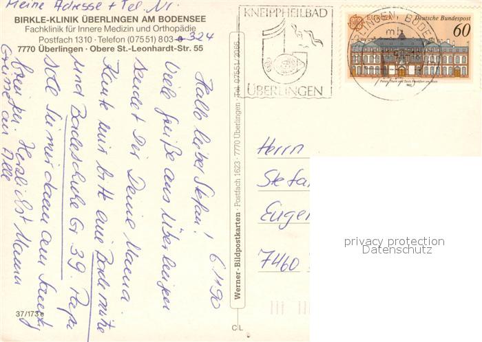 73739542 alte Postkarte ueberlingen Bodensee Birkle Klinik Patientenzimmer Speisesaal Hallenbad postalisch gelaufen Erhaltung siehe scans [WerneD78] KatCode: 11110008435059