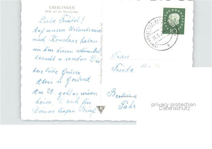 72612548 alte Postkarte ueberlingen Bodensee Blick auf die Saentisgruppe postalisch gelaufen Erhaltung siehe scans [AndreD76] KatCode: 11110008435059