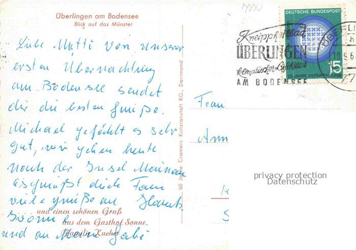 74104092 ueberlingen Bodensee BW Altstadt Blick auf das Muenster postalisch gelaufen Erhaltung siehe scans [FriedD77] alte Postkarte Frie Katcode 11110008435059