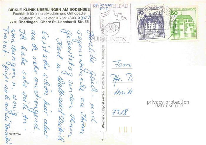 ueberlingen Bodensee BW Birkle-Klinik Speisesaal Patientenzimmer Hallenbad postalisch gelaufen Erhaltung siehe scans [FriedD77] alte Postkarte Frie Katcode 11110008435059