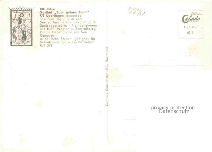 ueberlingen Bodensee BW Gasthof Gruener Baum Restaurant Ortsansicht vom See aus postalisch nicht gelaufen Erhaltung siehe scans [FriedD77] Frie Katcode 11110008435059