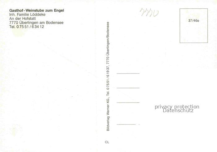 ueberlingen Bodensee BW Gasthof Weinstube zum Engel Gastraum Terrasse Strassencafé Altstadt postalisch nicht gelaufen Erhaltung siehe scans [FriedD77] Frie Katcode 11110008435059