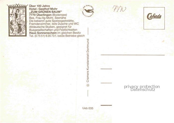 ueberlingen Bodensee BW Hotel Gasthof Mohr Restaurant Ortsansicht vom See aus postalisch nicht gelaufen Erhaltung siehe scans [FriedD77] Frie Katcode 11110008435059