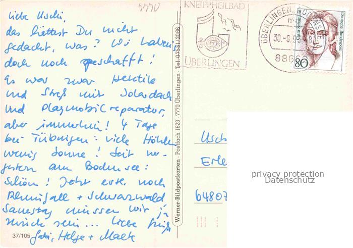 ueberlingen Bodensee BW Motiv Altstadt Fachwerkhaeuser Tuerschild postalisch gelaufen Erhaltung siehe scans [FriedD77] alte Postkarte Frie Katcode 11110008435059