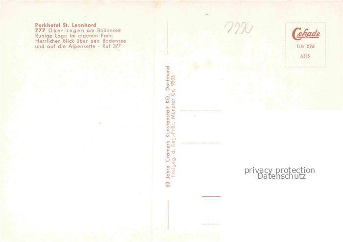 74104108 ueberlingen Bodensee BW Parkhotel St. Leonhard Panorama Blick auf Alpenkette postalisch nicht gelaufen Fliegeraufnahme Erhaltung siehe scans [FriedD77] KatCode: 11110008435059