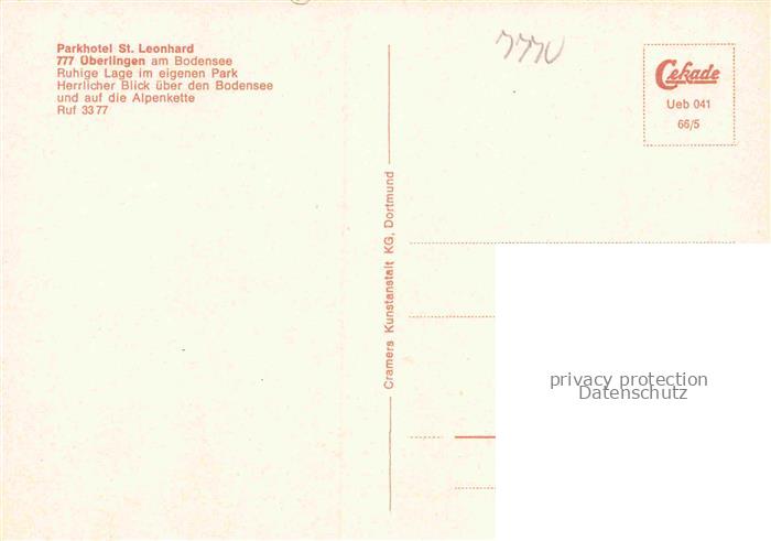 74104088 ueberlingen Bodensee BW Parkhotel St. Leonhard Panorama Blick auf die Alpenkette postalisch nicht gelaufen Fliegeraufnahme Erhaltung siehe scans [FriedD77] KatCode: 11110008435059