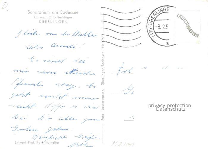 74148746 alte Postkarte ueberlingen Bodensee BW Sanatorium Dr. Buchinger Ausblick auf den See postalisch gelaufen Erhaltung siehe scans [FriedD77] KatCode: 11110008435059