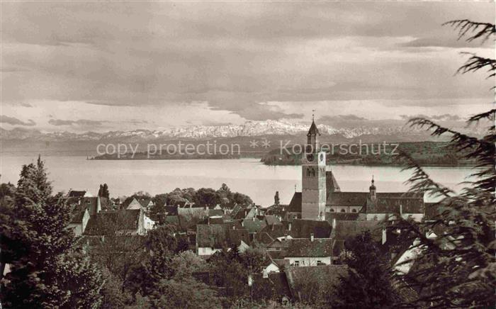 74121968 ueberlingen Bodensee BW Teilansicht mit Kirche Blick auf Insel Mainau und Schweizer Alpen postalisch nicht gelaufen Erhaltung siehe scans [FriedD77] Frie Katcode 11110008435059