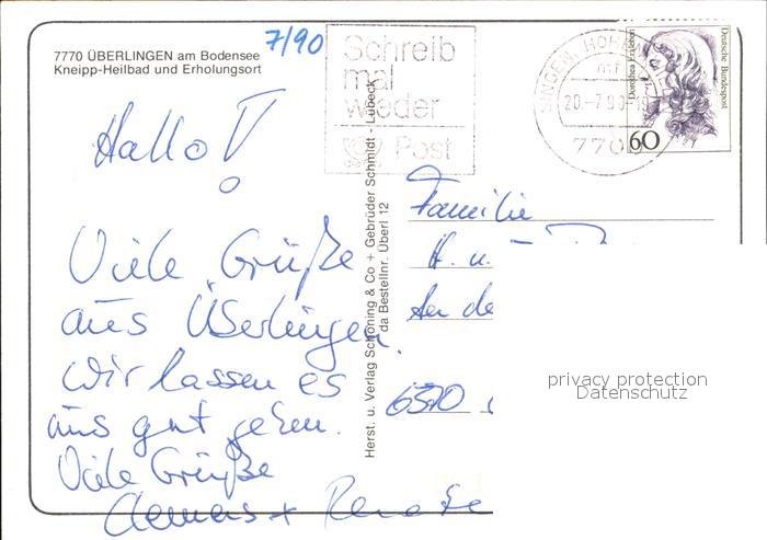 alte Postkarte ueberlingen Bodensee Faehre Promenade Marktplatz postalisch gelaufen Erhaltung siehe scans
