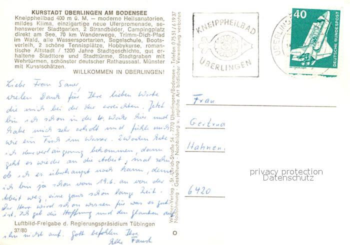 73040745 alte Postkarte ueberlingen Bodensee Fliegeraufnahme postalisch gelaufen Erhaltung siehe scans [NatalD47] KatCode: 11110008435059