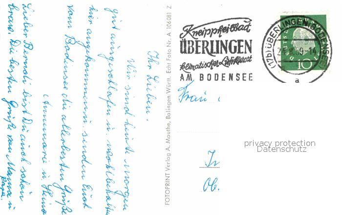 72827400 alte Postkarte ueberlingen Bodensee Fliegeraufnahme Uferpromenade Nikolaimuenster postalisch gelaufen Erhaltung siehe scans [LiesaD40] KatCode: 11110008435059