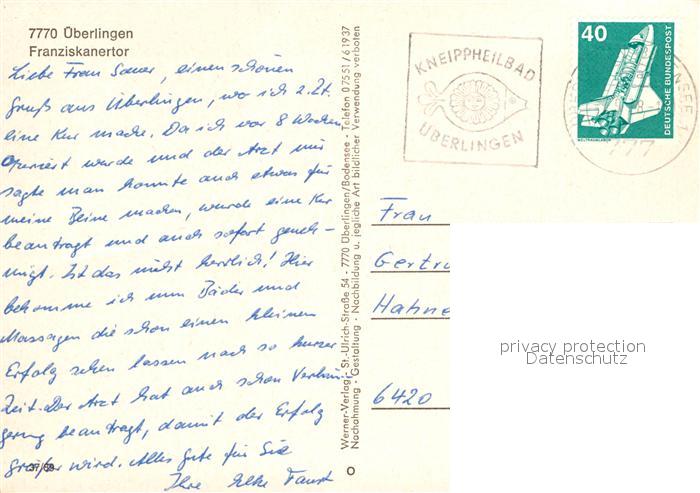 73040746 alte Postkarte ueberlingen Bodensee Franziskanertor postalisch gelaufen Erhaltung siehe scans [NatalD47] KatCode: 11110008435059