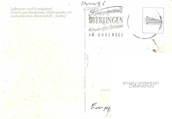 72743083 alte Postkarte ueberlingen Bodensee Hafenpartie mit auslaufendem Motorschiff Baden postalisch gelaufen Erhaltung siehe scans [FriedD77] KatCode: 11110008435059