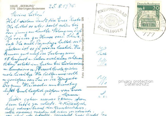 73636400 alte Postkarte ueberlingen Bodensee Haus Seeburg postalisch gelaufen Erhaltung siehe scans [WerneD78] KatCode: 11110008435059