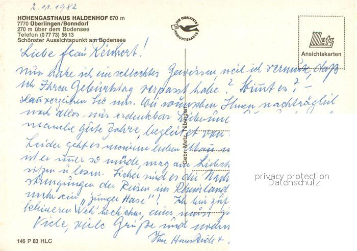 73634634 ueberlingen Bodensee Hoehengasthaus Haldenhof Terrasse postalisch nicht gelaufen Erhaltung siehe scans [FriedD77] KatCode: 11110008435059