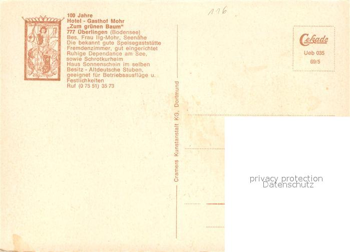 73569742 ueberlingen Bodensee Hotel-Gasthof Mohr Zum gr?nen Baum postalisch nicht gelaufen Erhaltung siehe scans [PaolaD17] KatCode: 11110008435059