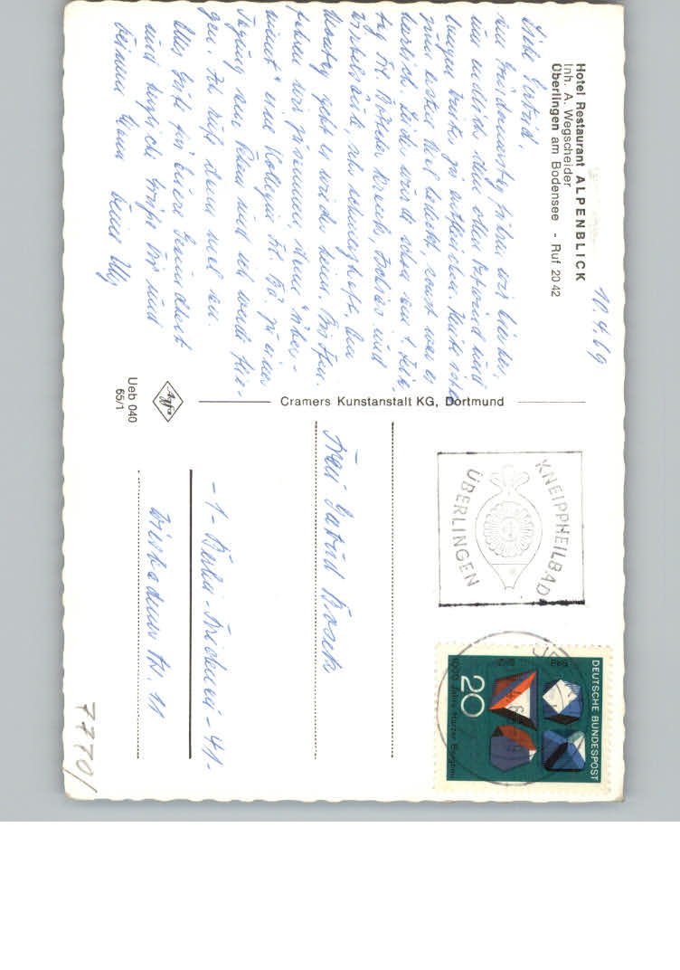 31164823 ueberlingen Bodensee Hotel Restaurant Alpenblick postalisch nicht gelaufen KatCode: 11110008435059